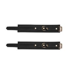 Need vegan-nahast jalarauad on kohustuslik lisa iga BDSM-i armastaja komplekti, pakkudes lihtsat ja erootilist viisi sidumismängudeks. Sobivad erinevate rollimängu stsenaariumide jaoks, vastupidavad, kuid mugavad kunstnahast jalarauad hoiavad sinu partneri kindlalt kontrolli all, samal ajal pakkudes nahale mõnusat mugavust. Paks kuldne kett ja pilkupüüdvad needid teevad nendest bondage-jalaraudadest elegantse täienduse igasse mänguasjasahtlisse.