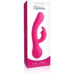 JimmyJane Ruby Rabbit Vibraator viib räbbiti klassikalise kuju uutesse kõrgustesse oma unikaalse kõveruse ja U-kujulise disainiga, ülima mugavuse tagamiseks mõne kasutaja jaoks.