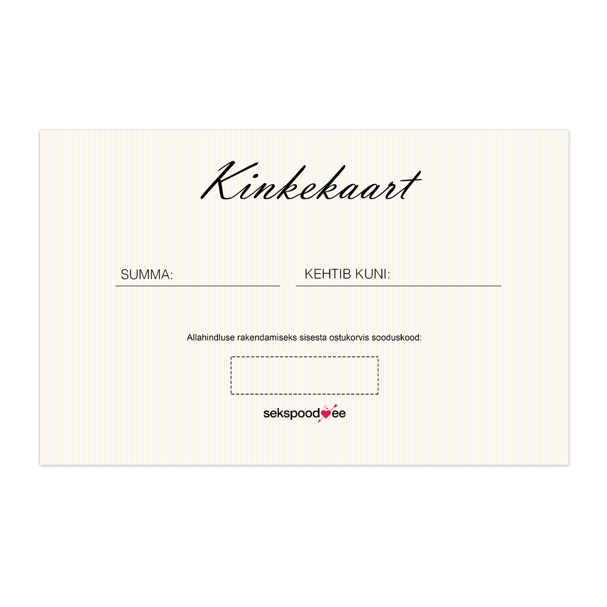 Meie 25€-ne kinkekaart on südamlik kingitus heale sõbrale, mis toob nii naeratuse kui naudingu.